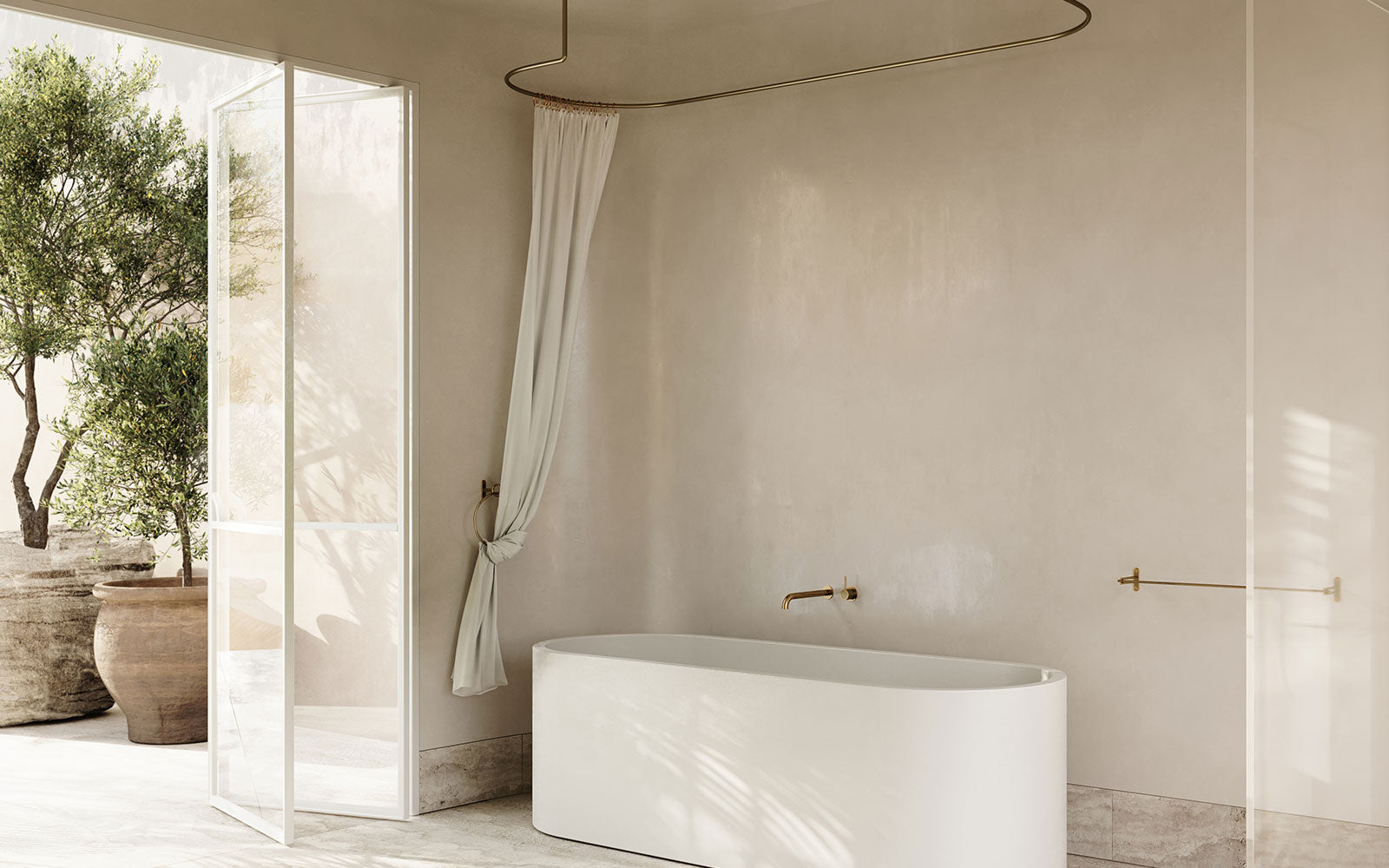 Cult Stella shower rail + linen curtain (chrome or brass)